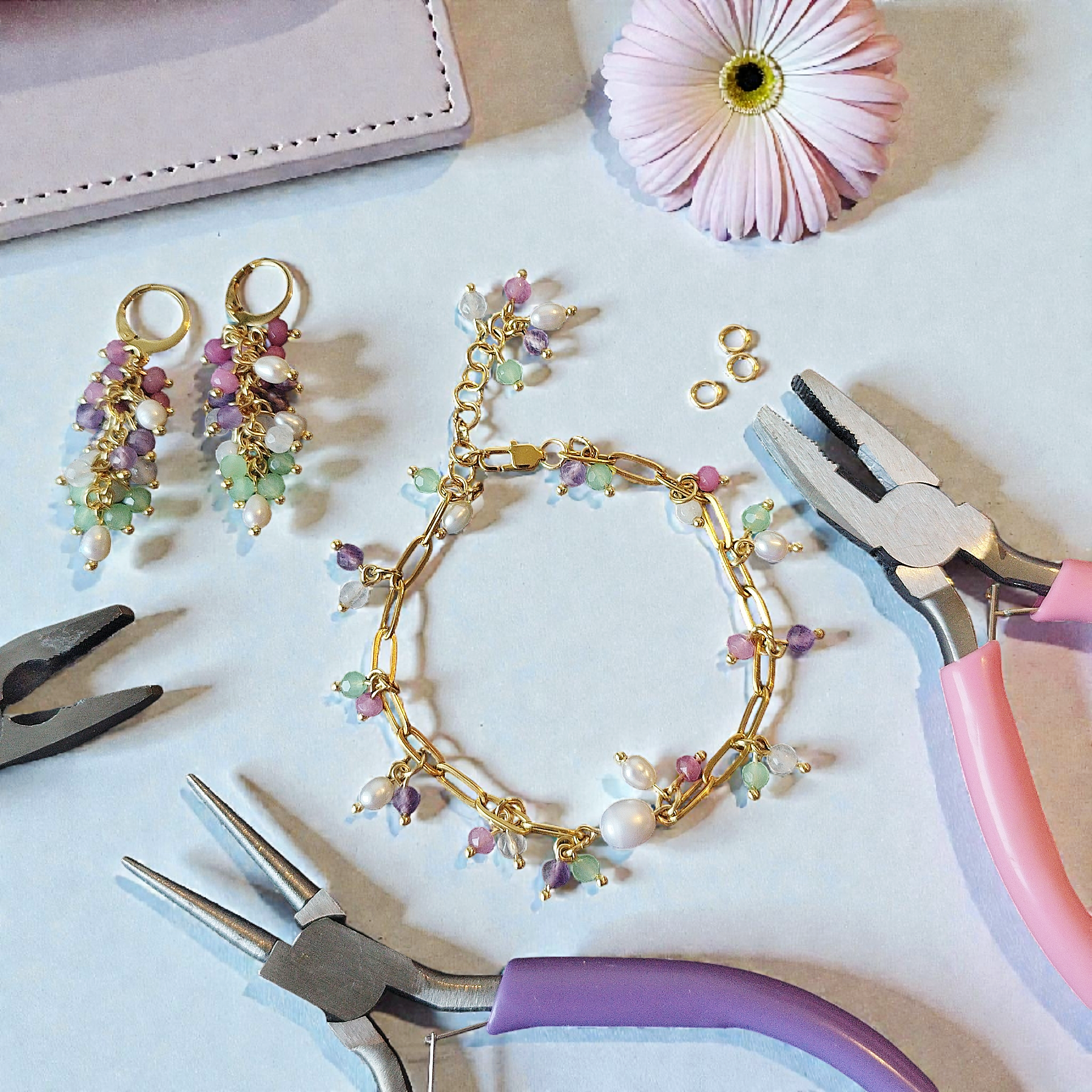 Masser af nye, håndlavede smykker i lækre sommerfarver.